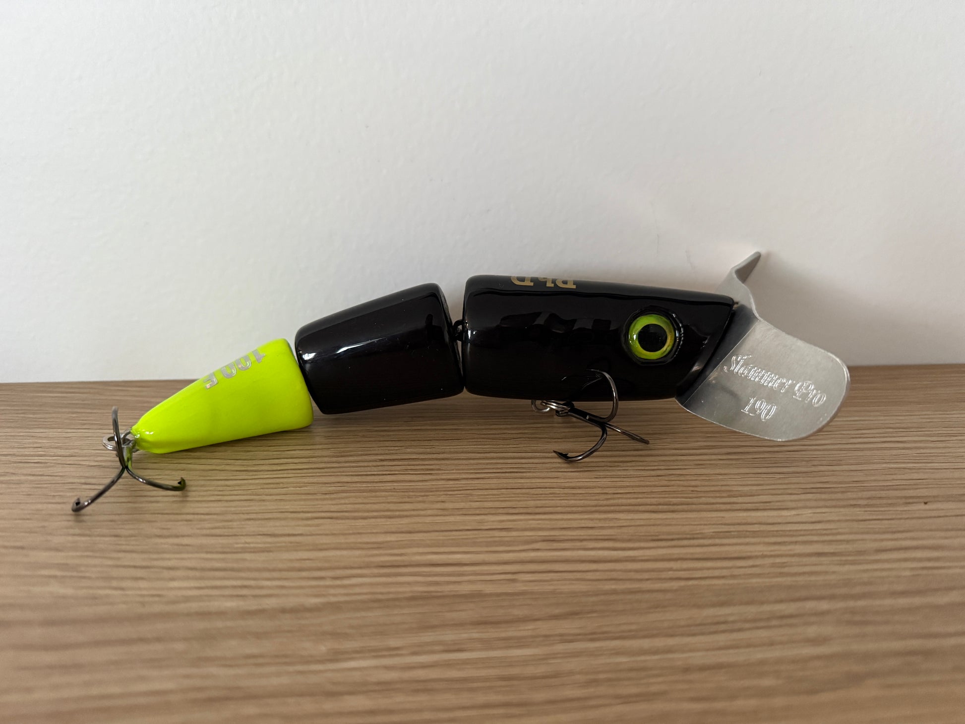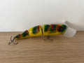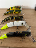 A 3 piece jointed surface lure designed to create a lot of noise and commotion. The timber used creates a sound the fish find irresistible. The bigger bib profile also pushes and moves a lot of water. 190mm long and 100grms in weight it’s easily thrown by most Barra and cod combos.